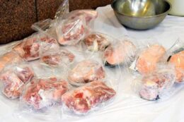 – Nấu sôi trong khoảng 2 – 3 phút thì đổ sườn ra, rửa sạch bọt và vụn thịt.