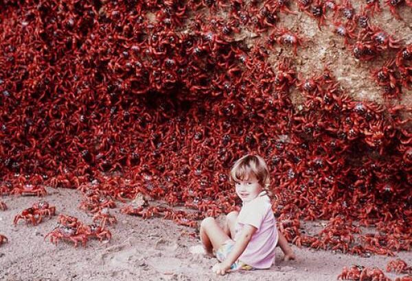 Vào mỗi cuối năm, đàn cua đỏ hàng triệu con trên đảo Giáng Sinh, Australia đổ ra biển đẻ trứng, nhuộm đỏ đường đi và rất nhiều trong số chúng bị xe cán chết.