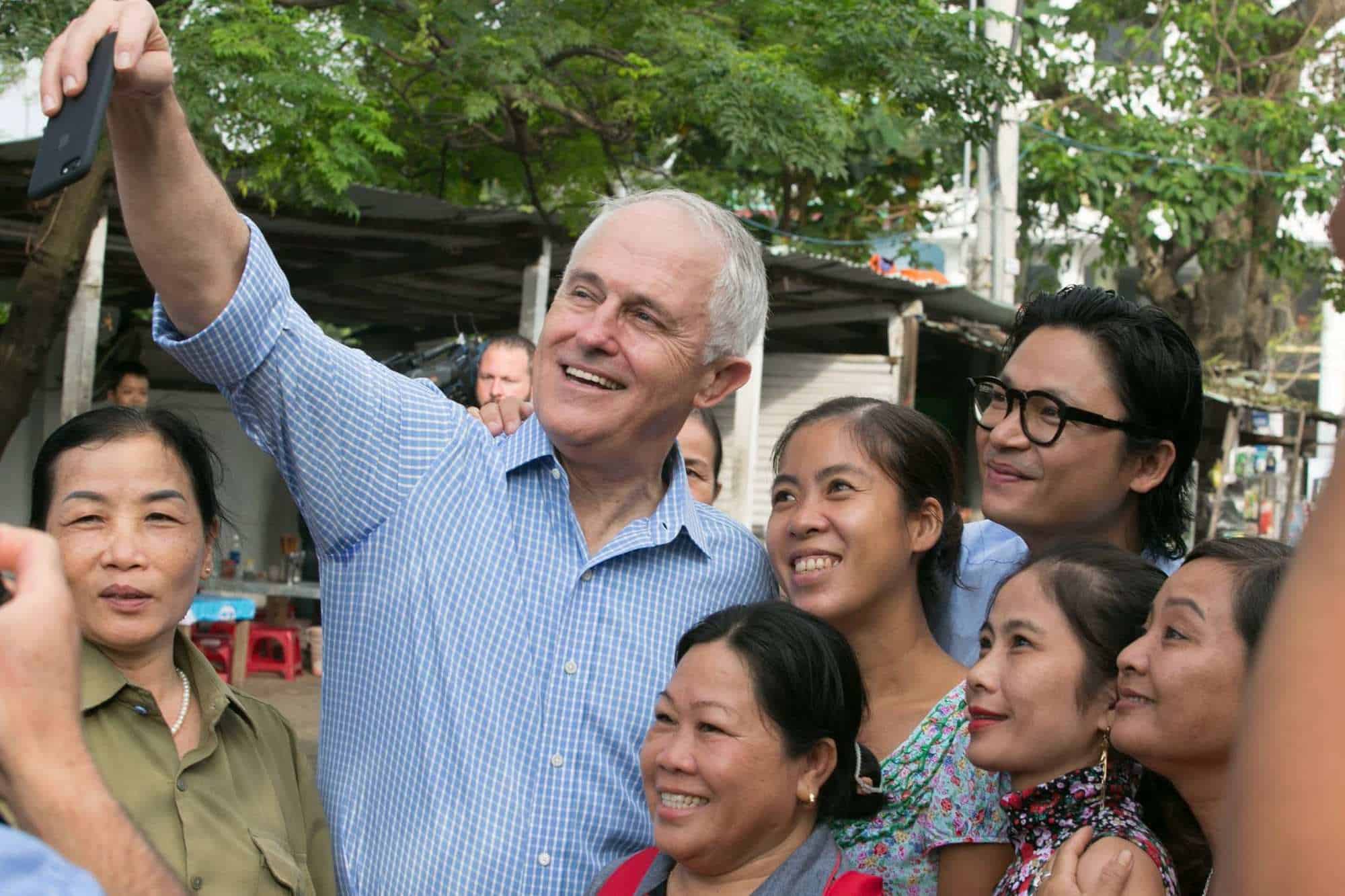 Thủ tướng Úc vui vẻ chụp hình cùng các bà con tiểu thương.