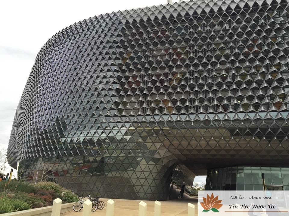 Người ta gọi đó là tòa nhà trái thơm, vì nhìn xa nó giống như trái thơm. Tuy nhiên, khi người của Thương vụ Úc giới thiệu, chúng tôi mới thấy mỗi mắt của cái “trái thơm” kia không giống nhau. Nó được thiết kế để tối ưu hóa việc tiếp nhận ánh sáng và thông gió. Nên mỗi miếng được thiết kế riêng, có góc độ khác nhau. Viện nghiên cứu ấy cũng mới chỉ hoạt động một phần nhỏ. Vì vậy chưa được trang bị nhiều.