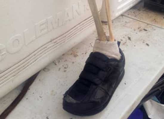 Cảnh sát nói thêm rằng cái chân vẫn còn đi giày, mắc kẹt trong đống gỗ nhỏ.