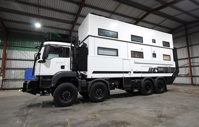 Nhìn bên ngoài, phương tiện này tựa như xe tải đường trường tuy nhiên trên thực tế đây là “biệt thự” di động trị giá hàng triệu USD với đầy đủ tiện nghi cho hành trình khám phá.