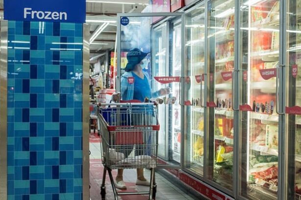 Một phụ nữ chọn thực phẩm đông lạnh tại một siêu thị ở Bắc Kinh, Trung Quốc, hôm 13/8. Ảnh: Reuters.
