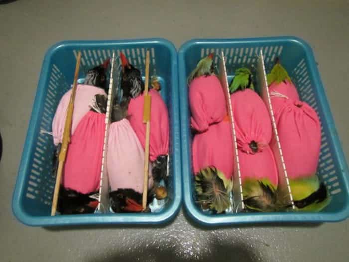 Hải quan phát hiện tất cả chim bị quấn trong miếng vải và buộc vào quanh chân người đàn ông này sau chuyến bay dài 15 giờ từ TP.HCM.