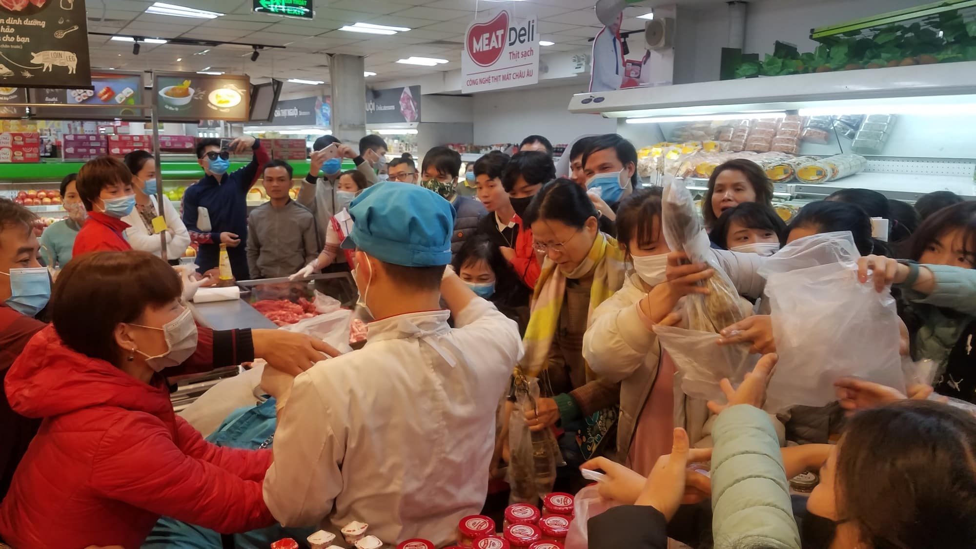 Hàng trăm người vây kín khu thuỷ sản trong một trung tâm thương mại ở Hà Nội chờ tôm hùm giảm giá lên kệ. (Ảnh: Thiên Trường)