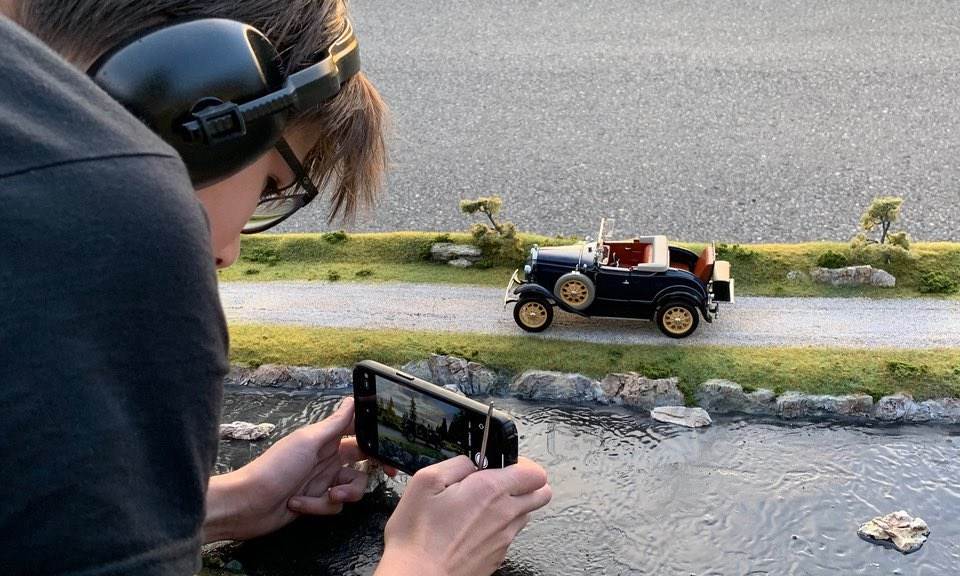 Thiết bị của Anthony lúc này là một chiếc iPhone 13 Pro Max, thiết lập ống kính góc rộng. Cậu thường chuẩn bị một mảng bối cảnh thu nhỏ để đặt xe lên trên, phần còn lại dựa hết vào sự sáng tạo từ các góc máy để tạo ra những khung cảnh giàu trí tưởng tượng.