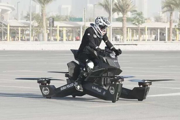 Theo CNBC, cảnh sát tại đất nước dầu mỏ Dubai sắp được trang bị những chiếc xe máy có thể bay lượn để họ có thể thực hiện nhiệm vụ tuần tra trên đường phố.