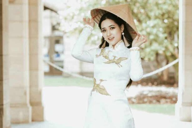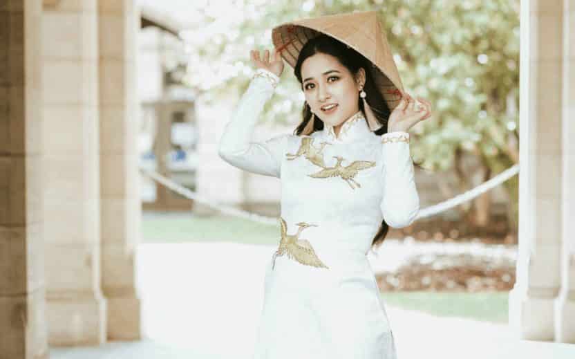 | Thiếu nữ với cái tên khá lạ Lý Lệ Mẫn (SBD06, đến từ Academic International Melbourne) tự tin khoe dáng với chiếc áo dài thướt tha và nón lá truyền thống. |