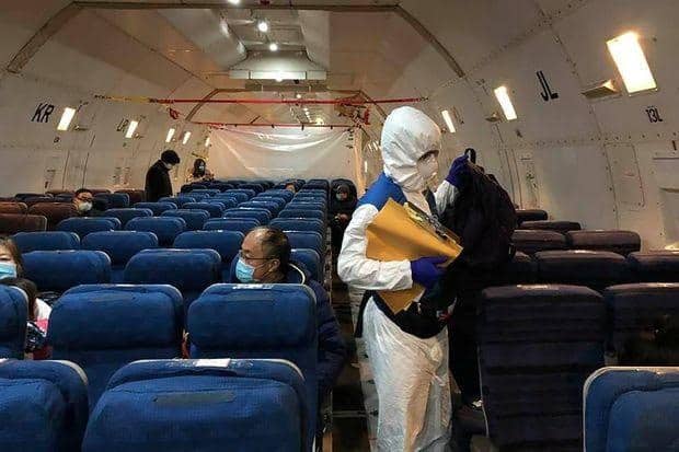 | Nhân viên đại sứ quán Mỹ trên một chuyến bay chở hàng được Bộ Ngoại giao Mỹ thuê để sơ tán người Mỹ và Canada từ Trung Quốc. Ảnh: Reuters. |