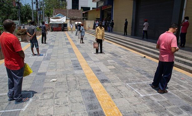 Người Ấn Độ xếp hàng mua rượu sau khi cửa hàng rượu mở lại vào ngày 3/5 ở Gauhati. Ảnh: AP.