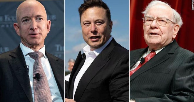 Các tỷ phú Jeff Bezos, Elon Musk và Warren Buffett (từ trái sang phải). Ảnh: Getty. |