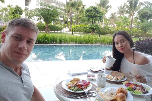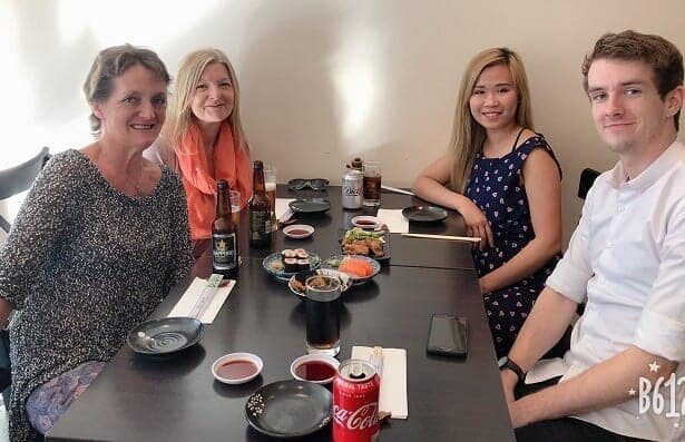 Tôi và anh quen nhau năm 2008 qua một người bạn. Khi đó tôi làm thông dịch viên và lễ tân cho một học viện tạo mẫu tóc của Singapore tại Sài Gòn, còn anh sang Việt Nam học võ, đi du lịch sau khi tốt nghiệp trung cấp tin học. Vốn là một người mê võ nên anh quyết định đến Việt Nam để học thêm. Anh đã bán xe hơi để thực hiện đam mê của mình.