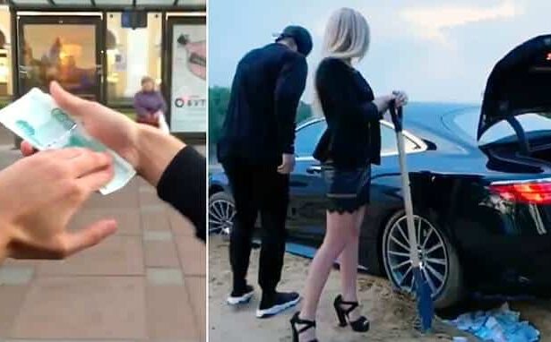 Một thanh niên thuộc hội con nhà giàu Nga bị chỉ trích vì ném tiền qua cửa xe hơi và mỉa mai người nghèo.
