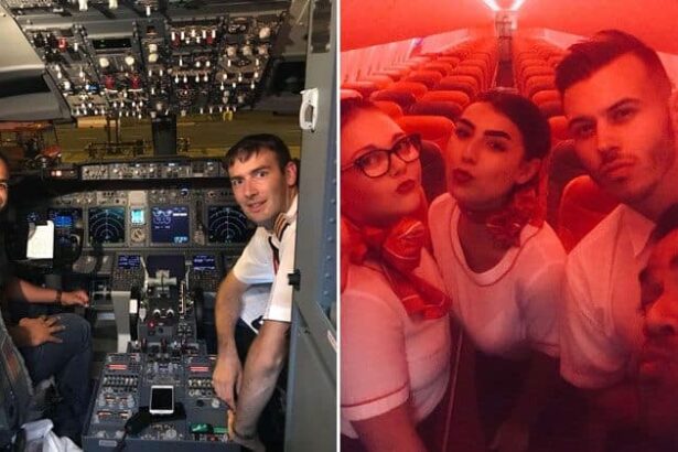 Trước giờ khởi hành, tiếp viên vẫn hướng dẫn an toàn bay cho hành khách duy nhất của chuyến. Họ dạt sang để khoe dãy ghế trống trơn dưới ánh đèn đỏ của máy bay.