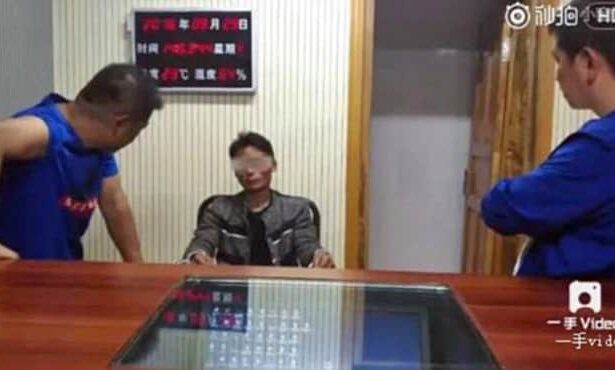 Yang Qingpei (giữa) tại cơ quan điều tra.