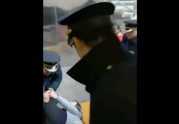 Dù được cảnh báo ngăn tàu chạy là hành vi phạm pháp, cô Haili nhất quyết bám lấy cửa toa. Khi nhân viên đoàn tàu buộc phải kéo cô xuống sân ga, người phụ nữ cố dùng chân chèn vào cửa.