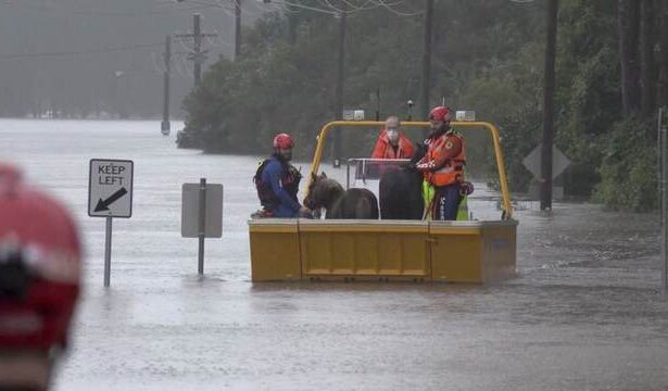 Trong trận ngập lụt kinh hoàng, người dân đã phải treo con bò lên nóc nhà, chỉ để hở phần đầu để cứu con vật giúp họ mưu sinh hàng ngày.