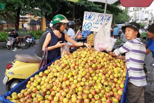 Tại khu vực chợ như: Bà Chiểu, Thị Nghè (quận Bình Thạnh), chợ Bàn Cờ (Quận 3) hay các tuyến đường như: Quang Trung, Gò Vấp, Trường Chinh, (quận Tân Bình) rất nhiều xe bán dạo và các lô, sạp trái cây bên lề đường bán nhiều trái đào vàng, đỏ, xanh, xoài mút, dưa lưới … với giá từ 20.000-30.000 đồng/kg.