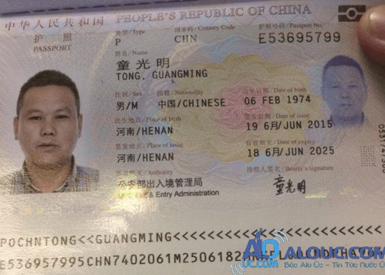 Hộ chiếu của hành khách người Trung Quốc bị bắt quả tang ăn cắp Tong Guagming. |