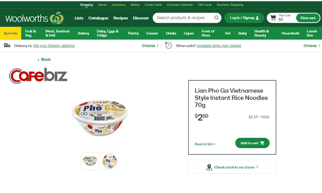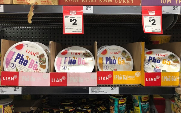 Tra cứu trên website chính thức của siêu thị Woolworths, một hộp phở bò ăn liền LIAN 70gam được bán với giá 2,5 đô la Úc, hay 3,57 đô la Úc cho mỗi 100gam (tương đương 60.000 đồng). Mức giá này cao gấp 3 lần so với giá bán sản phẩm tương tự của Vifon trong nước (hộp phở bò ăn liền 120gam của Vifon ở các cửa hàng bán lẻ tại Việt Nam đang được niêm yết khoảng 22.000 đồng, hay 18.300 đồng cho mỗi 100gam).