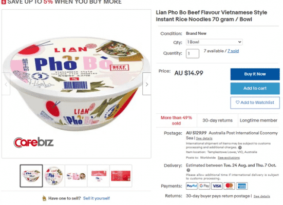 Ngoài phở bò, nhãn hiệu LIAN của Vifon còn có sản phẩm phở gà và phở rau với mức giá tương tự, được phân phối ở nhiều siêu thị và cả sàn TMĐT Ebay, với giá 14,99 đô la Úc/thùng 12 hộp (khoảng 254.000 đồng).