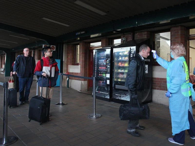 | Người dân bang Victoria được kiểm tra thân nhiệt tại Nhà ga Trung tâm ở thành phố Melbourne. Nguồn Getty Images. |