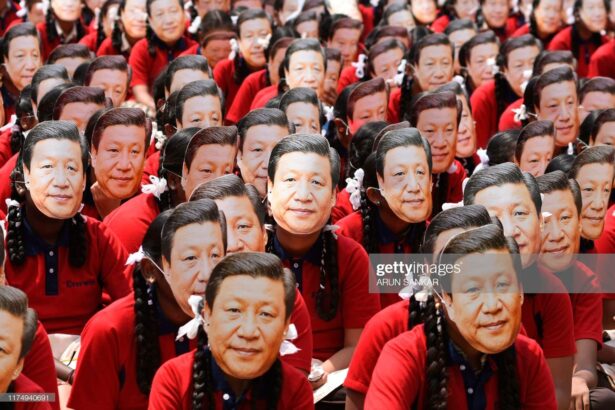 Trong thời gian ông Tập Cận Bình đến thăm Ấn Độ, một trường học ở địa phương đã tổ chức cho khoảng 2000 học sinh cùng đeo mặt nạ gương mặt ông Tập để chào đón ông đến. (Ảnh: Getty Images)