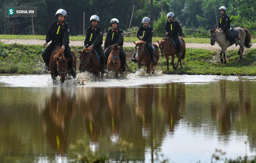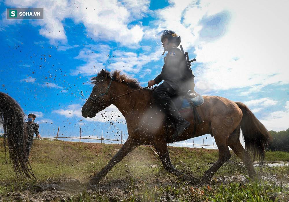 Để khống chế tội phạm, các chiến sĩ Đoàn Cảnh sát Cơ động kỵ binh tập các bài tấn công từ trên lưng ngựa, tấn công nhiều đối tượng với những thế đánh khác nhau.