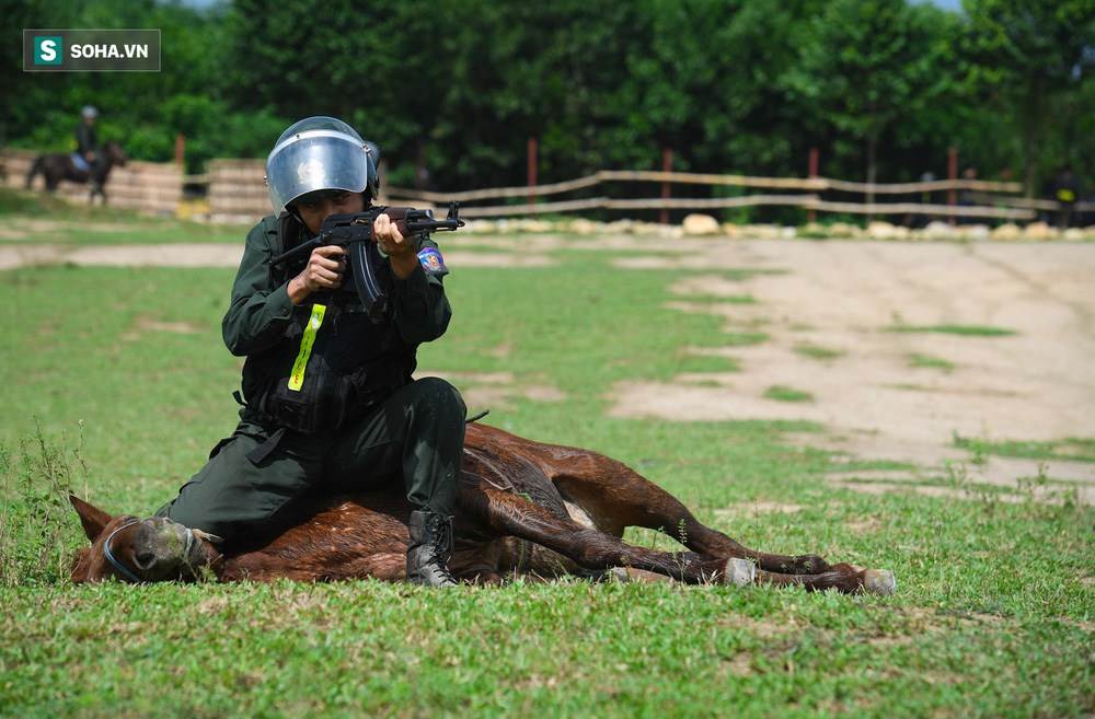 Để phục vụ chiến đấu, các chiến sĩ Đoàn Cảnh sát Cơ động Kỵ binh tập luyện các bài cưỡi ngựa bắn súng. Thượng sĩ Nguyễn Bửu Pháp cho biết đây là một động tác khó, khi nằm xuống sẽ đau lưng và không điều khiển được ngựa. Lúc đầu, ngựa mất phương hướng, lao vào hàng rào khiến anh ngã mấy lần. Nhưng sau đó, ý thức được việc nằm bắn sẽ hạ độ cao, giúp né đạn trong chiến đấu, anh đã tập luyện thành thục sau một tháng.