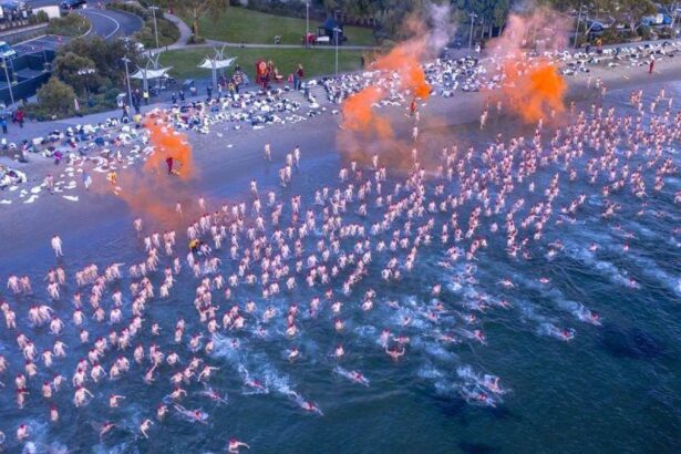Trong lễ hội sáng nay, nhiệt độ ngoài trời xuống tới 5 độ C không thể ngăn những người tham gia háo hức lao vào làn nước của sông Derwent trong một bầu không khí hết sức phấn khích. Hàng ngàn người tham gia lễ hội, đội mũ bơi màu đỏ làm nhiệt độ dường như nóng thêm.