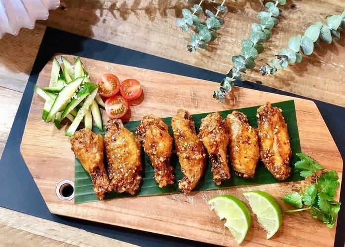 – Cánh gà cắt thành 3 khúc, rửa sạch, để ráo.