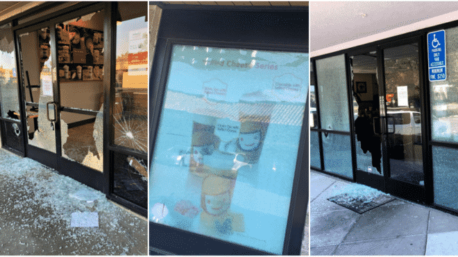 | Các cửa hàng của người Việt ở San Jose bị đập vỡ hết cửa kính. Ảnh: Nhân vật cung cấp. |