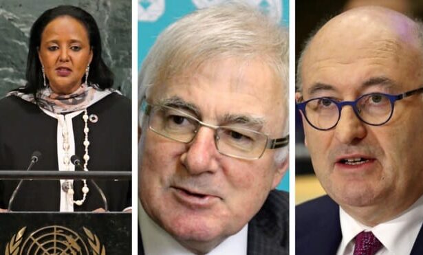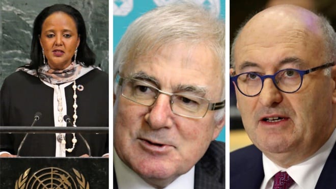 Bà Amina Mohamed (trái), ông Tim Groser (giữa) và ông Phil Hogan (phải). Ảnh: Nikkei Asian Review. |