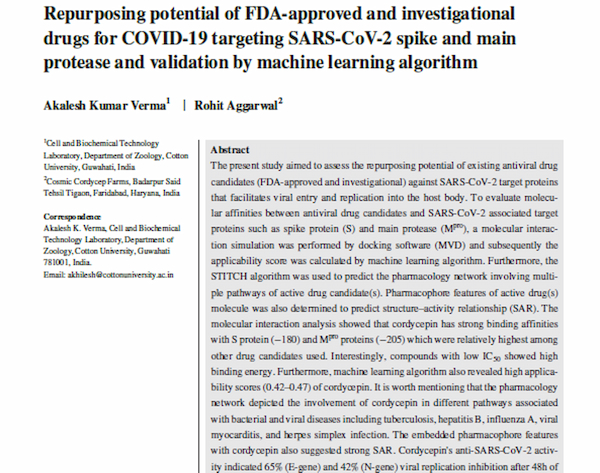 Công bố khoa học mới về tiềm năng điều trị virus SARS-CoV-2 của hoạt chất cordycepin.