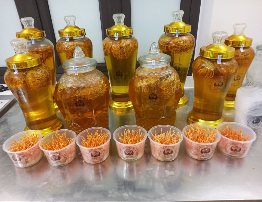 Sản phẩm nấm đông trùng hạ thảo ĐỖ HÀ GIA TRANG dùng để ngâm mật ong, ngâm rượu, nấu canh, dùng thay trà…