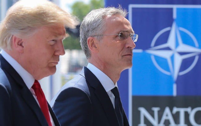 | Tổng thư ký NATO Jens Stoltenberg và Tổng thống Mỹ Donald Trump. Ảnh: CNN. |