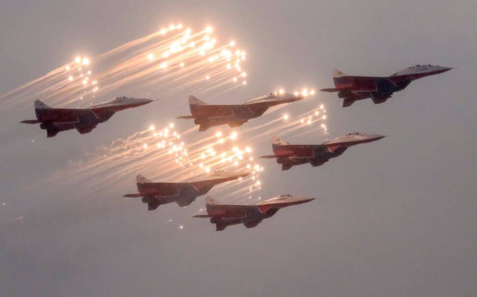 | Các máy bay MiG-29 trình diễn tại St Petersburg, Nga, năm 2019. Ảnh: Reuters. |