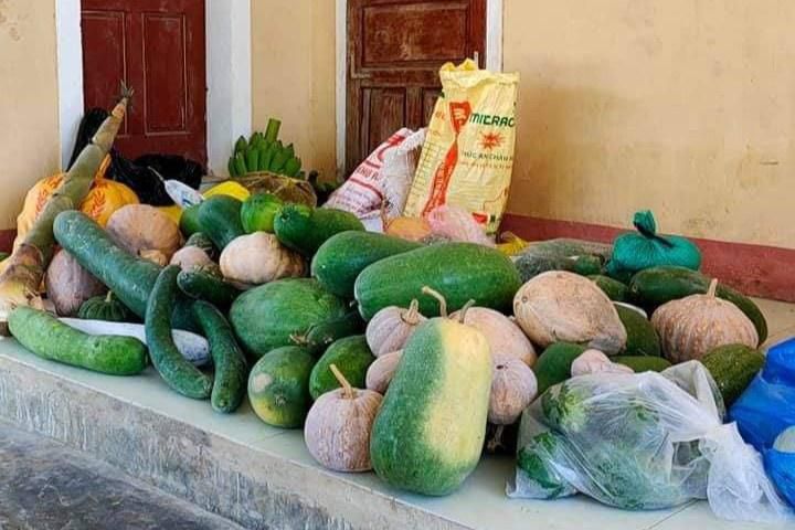 Bà Lê Thị Ngọ, Chi hội trưởng Hội Phụ nữ thôn Hà Nam, cho biết chỉ vài tiếng sau khi thông báo về hoạt động quyên góp, bà con trong thôn từ người già, trẻ nhỏ mang những trái bí xanh, bí đỏ, cá khô, lạc, vừng, gạo… đến để ủng hộ.