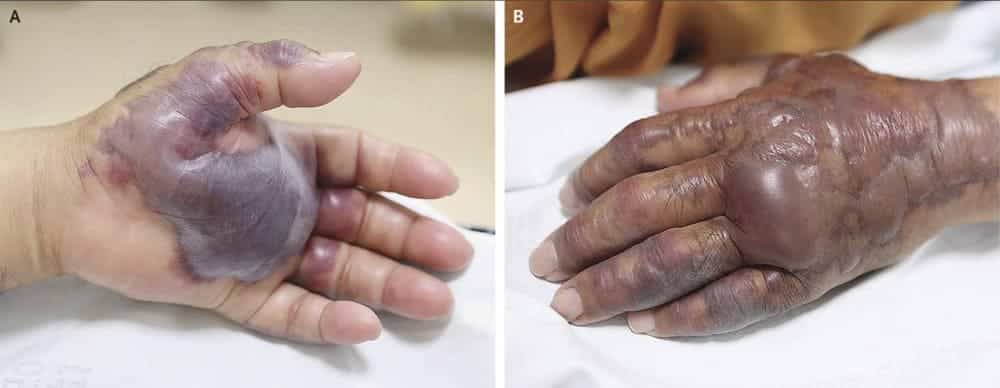 Tình hình càng trở nên nghiêm trọng hơn khi các vi khuẩn đang gây ra những vết loét hoại tử sâu trên bàn tay của bệnh nhân.