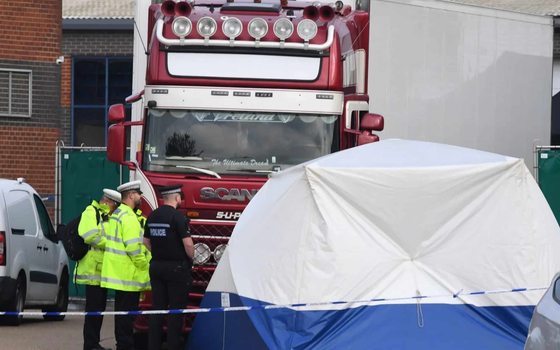 Cảnh sát tại hiện trường vụ 39 người chết trong xe container ở Anh.
