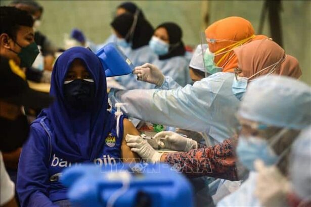 Tiêm vaccine ngừa COVID-19 cho người dân tại trung tâm dã chiến ở Tangerang, Indonesia, ngày 17/7/2021. Ảnh: THX/TTXVN