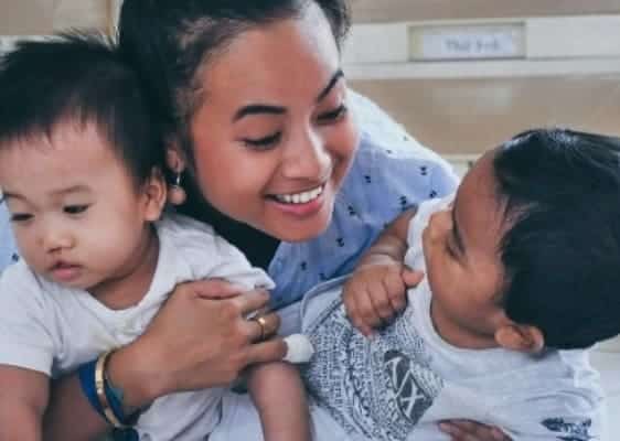 Amanda cùng những đứa trẻ ở Viện mồ côi Wema.