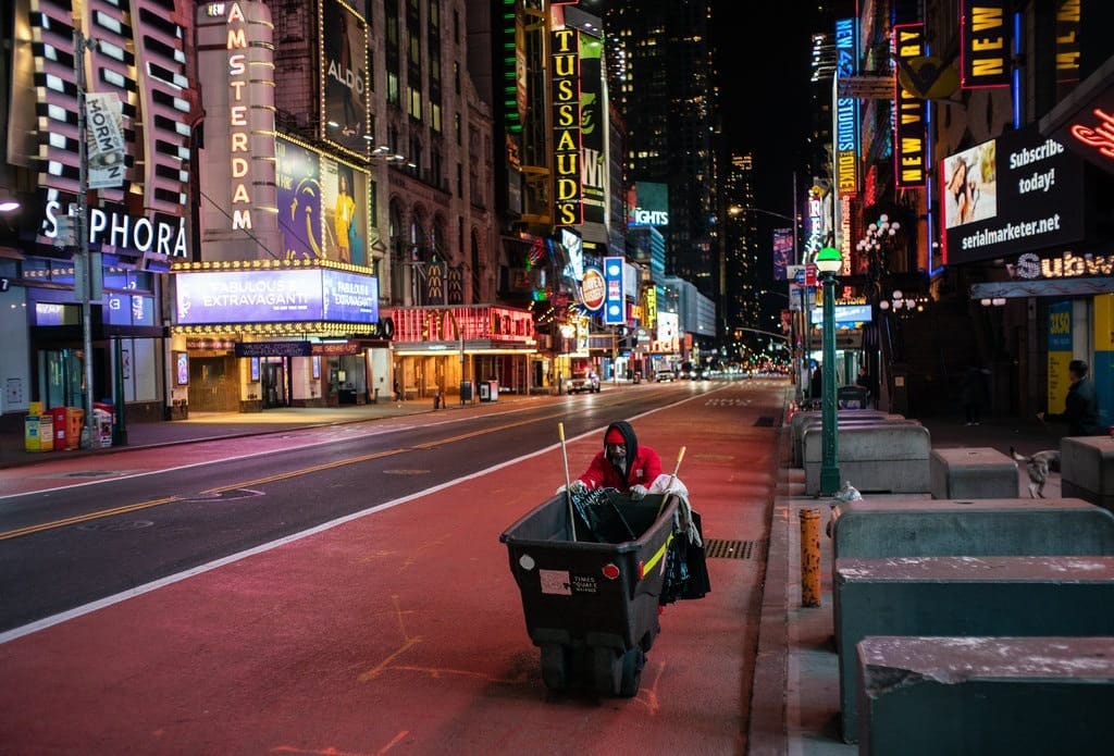 | Time Square tại thành phố New York tối ngày 18/3. Bang này đã có 10.000 ca nhiễm. Ảnh: New York Times. |