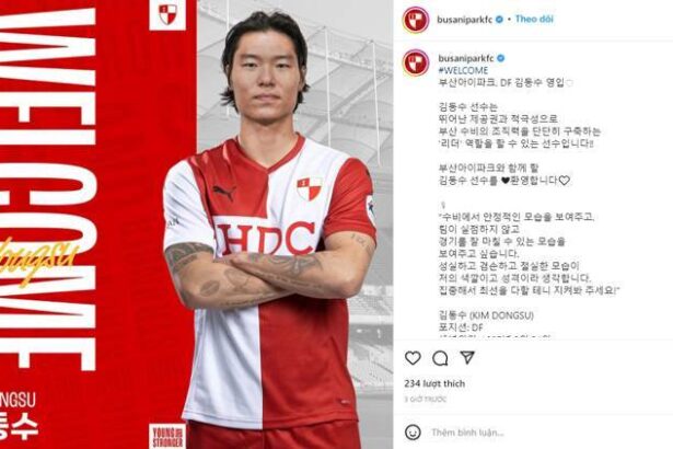 “Kim Dong Su là một cầu thủ có thể đóng vai trò thủ lĩnh trong việc xây dựng sức mạnh nơi hàng phòng ngự. CLB chắc chắn sẽ mạnh mẽ hơn với đẳng cấp của Kim!! Chào mừng Kim Dong Su đến với Busan”, CLB đang chơi tại K-League 2 đưa ra thông báo.