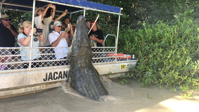 Cá sấu dài 6m chồm lên tấn công du khách…