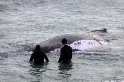 Úc: Cá voi khổng lồ chảy máu, cá mập bao vây rỉa thịt