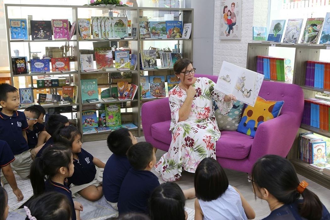 Ngày 23/8, Phu nhân Thủ tướng Úc dành thời gian trò chuyện và đọc sách cùng học sinh Trường Phổ thông Liên cấp H.A.S.