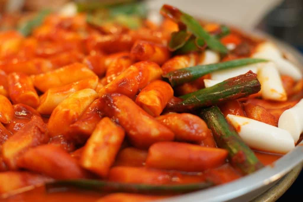 Được dịch theo nghĩa đen là “bánh gạo xào”, tteokbokki là một món ăn đường phố phổ biến của Hàn Quốc được làm từ garaetteok cỡ nhỏ . Không giống như phiên bản Trung Quốc được cắt lát và dẹt, garaetteok là một loại bánh gạo dài, hình trụ và bánh thường dai hơn nhiều so với phiên bản Trung Quốc.