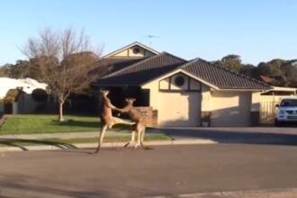 Hài hước chuột túi đánh nhau túi bụi trên đường phố Australia