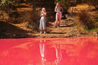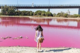hồ nước màu hồng ở úc